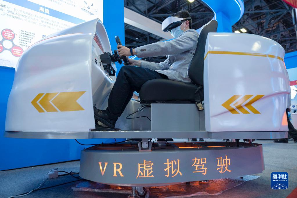 10月21日,在北京展覽館舉行的國(guó)家“十三五”科技創(chuàng)新成就展上,一名觀(guān)眾體驗(yàn)VR虛擬駕駛。新華社記者 才揚(yáng) 攝