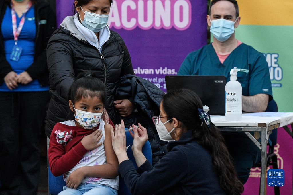 9月27日,一名兒童在智利首都圣地亞哥的普羅維登西亞學校接種科興新冠疫苗。新華社發(豪爾赫·比列加斯攝)
