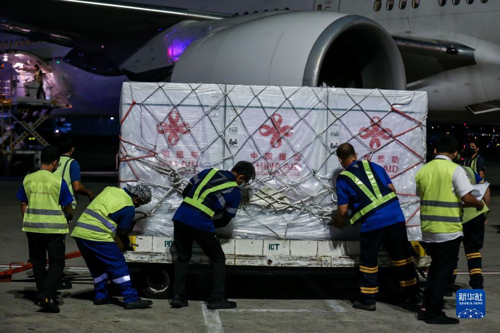 10月24日,工作人員在菲律賓馬尼拉國際機場運輸中國政府援助菲律賓的第四批新冠疫苗。新華社發(烏馬利攝)