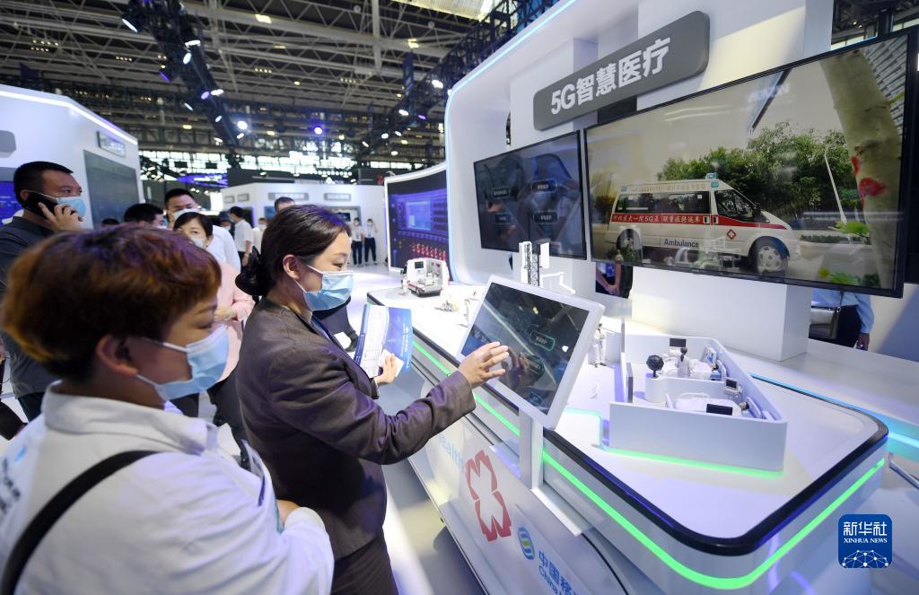 9月7日,參觀者在2021中國國際數字經濟博覽會參觀5G智慧醫療展臺。新華社記者 王曉 攝