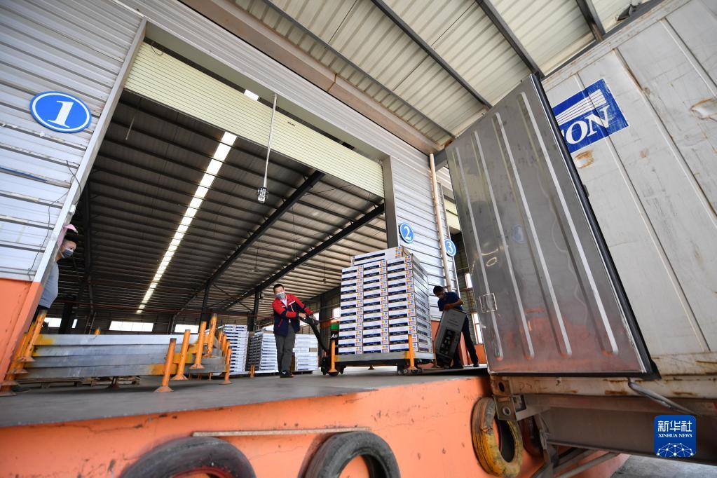在江西省贛州市南康家具產業園,工人將即將出口的成品家具裝車(2020年2月26日攝)。新華社記者 胡晨歡 攝