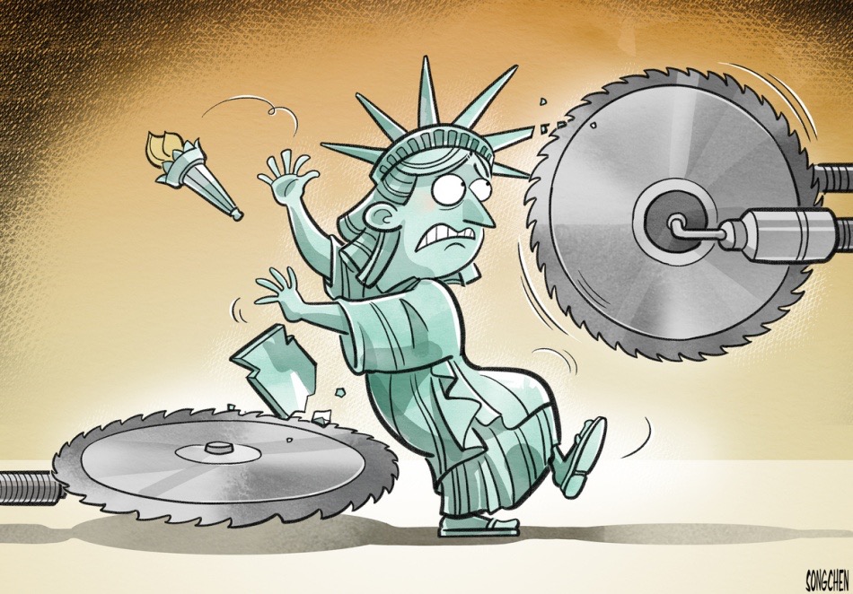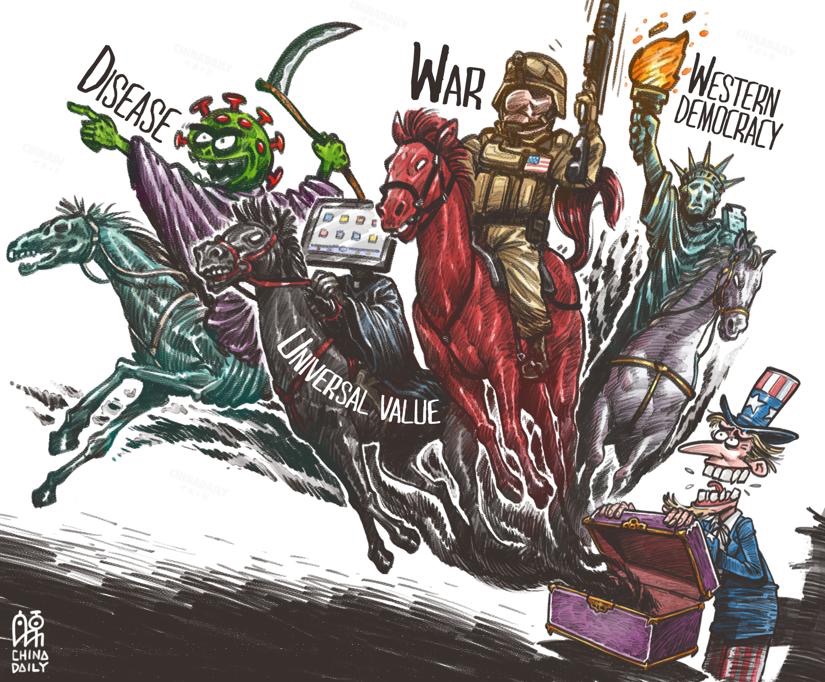 中國(guó)日?qǐng)?bào)系列漫畫(huà):十問(wèn)美國(guó)民主 真相觸目驚心