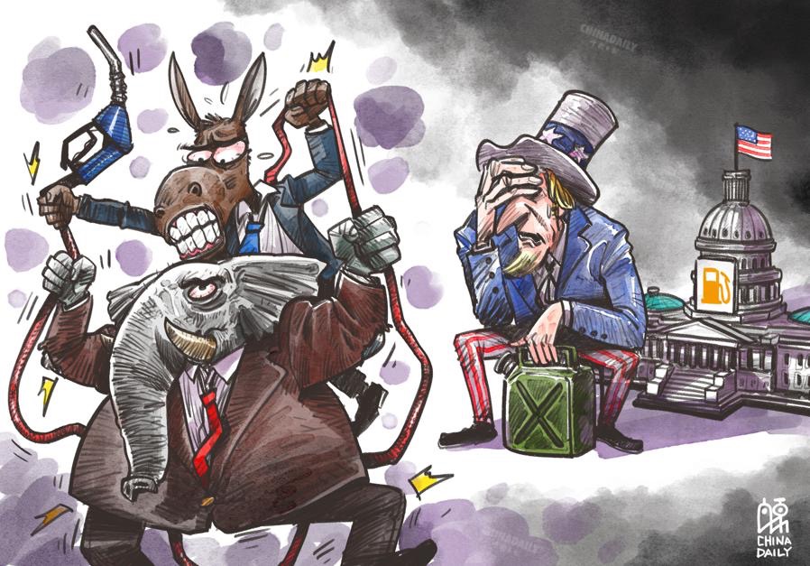 美國(guó)兩黨間的相互爭(zhēng)斗,屢屢導(dǎo)致政府“關(guān)門”與停擺。聯(lián)邦政府與州政府的相互掣肘使得國(guó)家內(nèi)部相互爭(zhēng)權(quán)內(nèi)耗、聯(lián)邦政令不暢、基建難以推行。