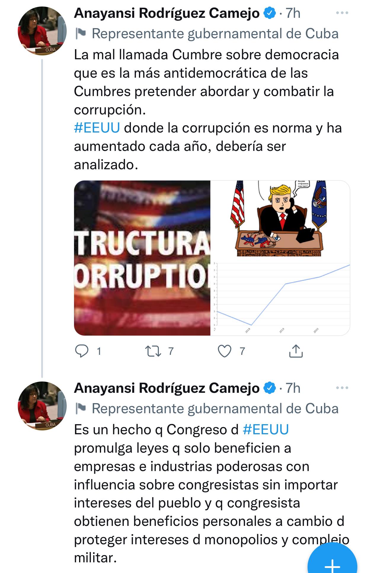 △古巴副外長(zhǎng)安娜揚(yáng)西·羅德里格斯社交賬號(hào)截圖