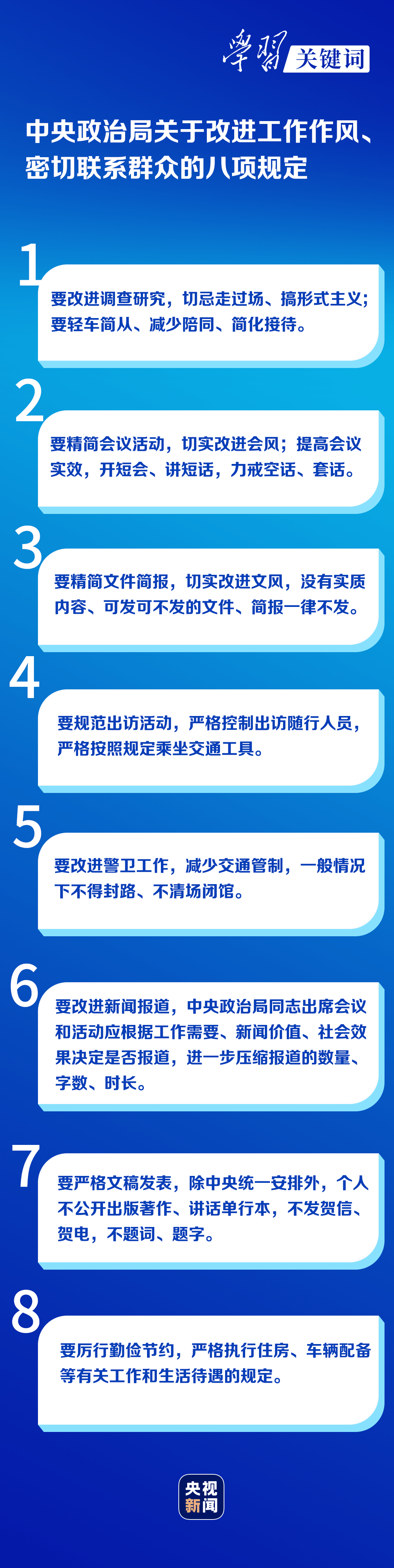 “中央八項規定不是五年、十年的規定,而是長期有效的鐵規矩、硬杠杠!