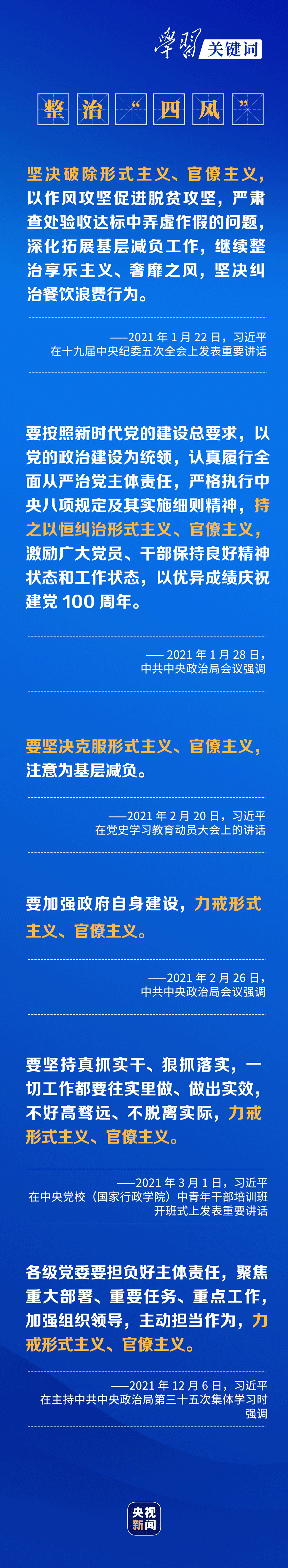 “要把造福人民作為最重要的政績,堅決反對和克服形式主義、官僚主義!