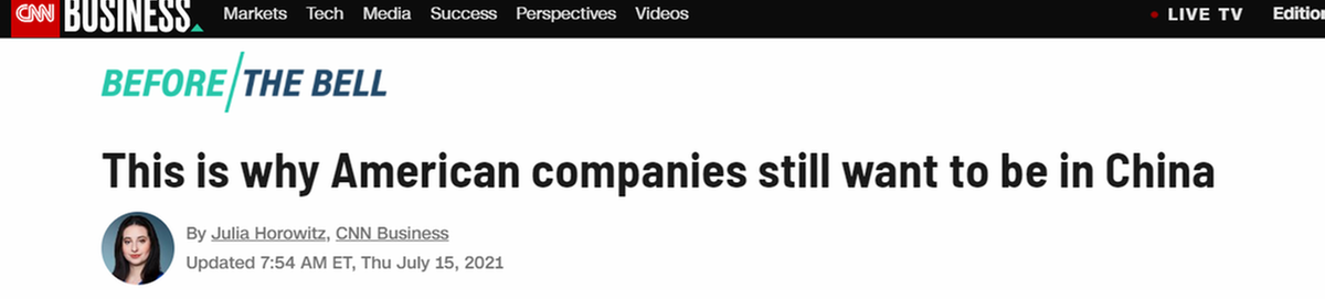美國有線電視新聞網7月15日報道,中國最新的經濟數據凸顯了為什么對許多美國公司來說,留在中國發展是值得的。