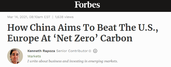 美國福布斯雜志網站報道稱,倫敦關鍵元素集團(Key Elements Group)負責人戴維·扎伊金說,中國將加速投資清潔能源技術(比如電動汽車電池和太陽能電池板),并提高電網中零碳、零排放能源占比。