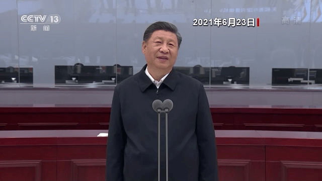 今年6月23日,習近平來到北京航天飛行控制中心,同正在天和核心艙執行任務的神舟十二號航天員聶海勝、劉伯明、湯洪波親切通話。