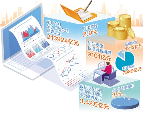 日前召開的中央經濟工作會議明確,明年繼續實施積極的財政政策,積極的財政政策要提升效能,更加注重精準、可持續。一系列措施正在發力,護航宏觀經濟大盤平穩前行。