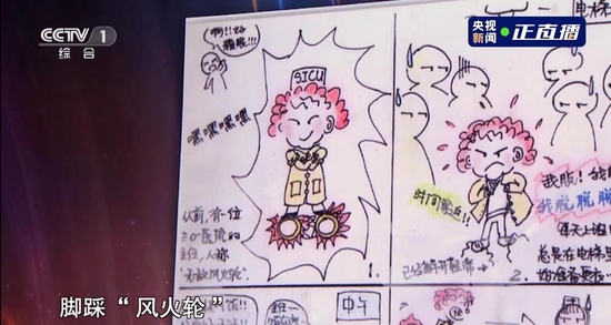 現場,選手還帶來了2007年宋青女兒給媽媽畫的一幅漫畫。漫畫中,宋青腳踩“ 風火輪 ”,身穿白大褂,風風火火的樣子形象地展現出一名軍醫的忙碌與責任。