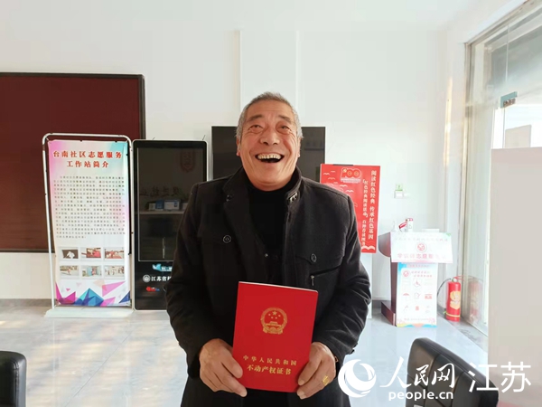 收到“遲到”13年的房產(chǎn)證,社區(qū)居民喜笑顏開。顧天霄攝
