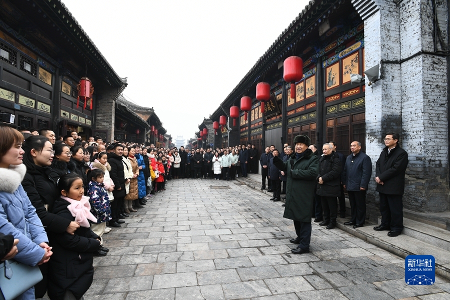 1月26日至27日,中共中央總書記、國家主席、中央軍委主席習近平來到山西,看望慰問基層干部群眾。這是27日上午,習近平在平遙古城同現場群眾親切交流。新華社記者 謝環馳 攝