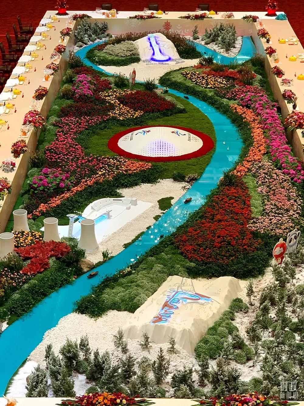 △宴會廳擺放的“春”主題冰雕。(總臺央視記者鐘鋒拍攝)