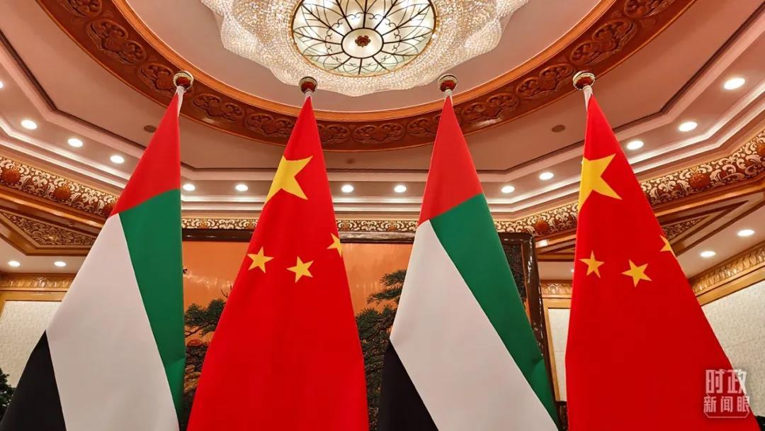 △阿拉伯聯合酋長國國旗與五星紅旗。(總臺央視記者楊立峰拍攝)