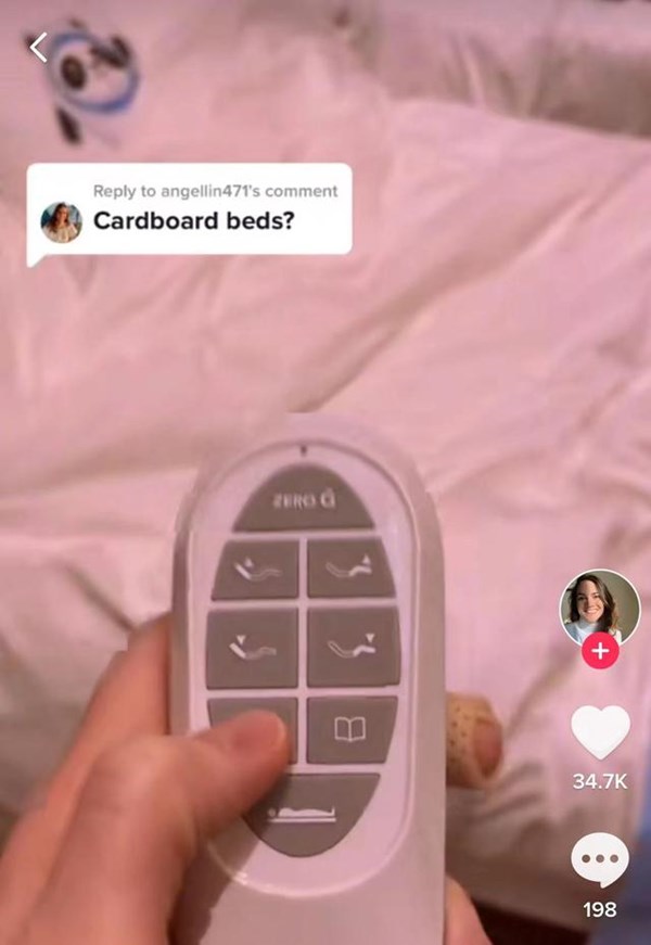 薩默·布里徹先向大家展示了床的遙控器,并介紹床墊可以升高和降低到多個(gè)位置,以獲得最大的舒適度。同時(shí),她還體驗(yàn)了床的“零重力模式”并給予盛贊。