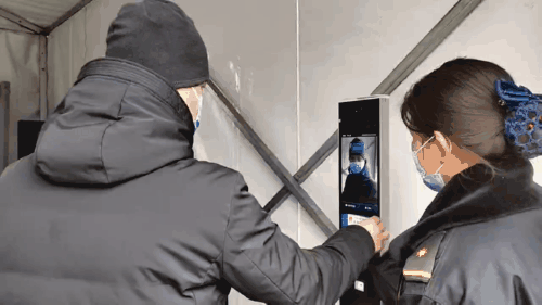 圖為海淀冬奧文化廣場(chǎng)的入口。游客要通過(guò)智能測(cè)溫驗(yàn)碼機(jī)器人進(jìn)行紅外體溫測(cè)量,并且刷身份證進(jìn)行人臉識(shí)別,符合入園要求方可入園。中工網(wǎng)記者 劉云攝