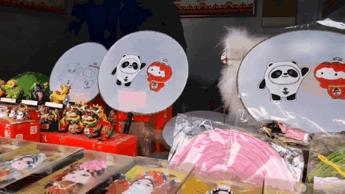 圖為非遺體驗(yàn)區(qū)中繪有“冰墩墩”“雪容融”的團(tuán)扇,游客可以親手繪制一個(gè)“私藏版”的奧運(yùn)吉祥物團(tuán)扇。中工網(wǎng)記者 劉云攝