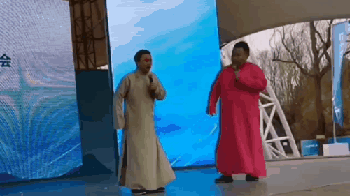 圖為相聲演員在表演《冰雪之城》,其中一位正在模仿短道速滑的動(dòng)作。中工網(wǎng)記者 劉云攝
