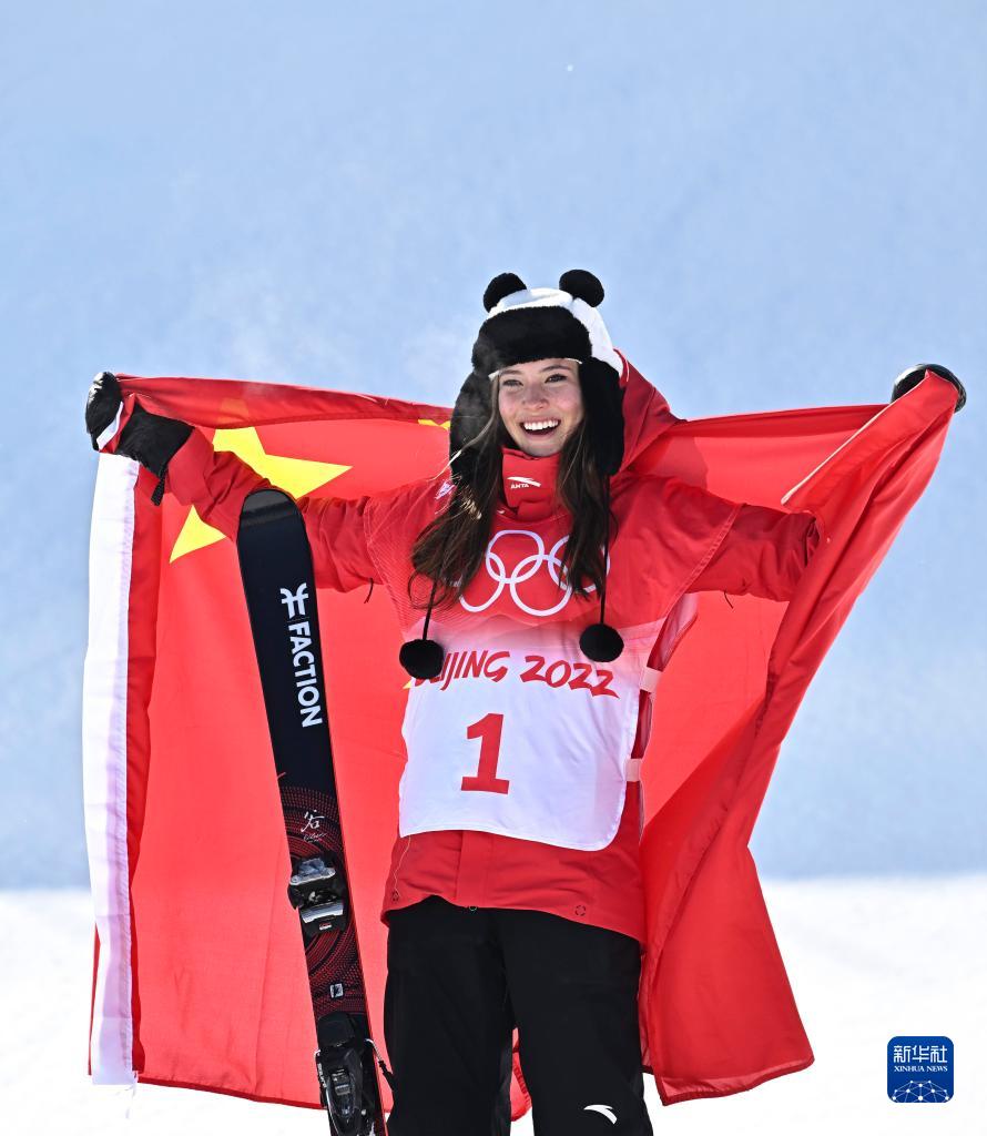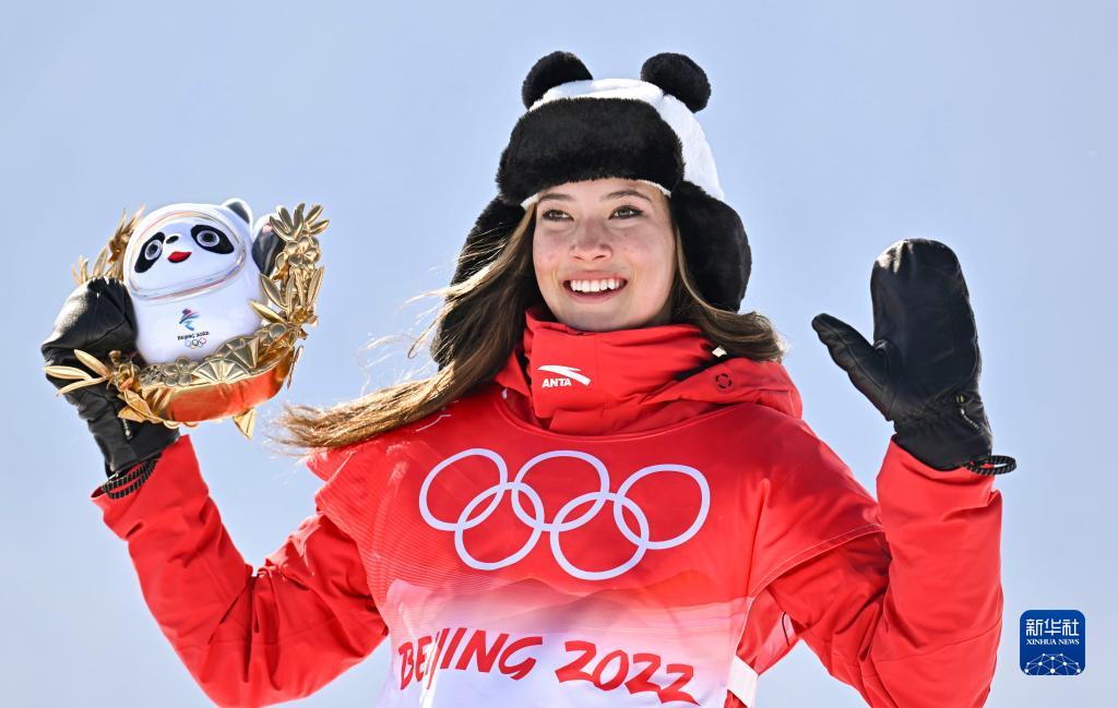 當日,北京2022年冬奧會自由式滑雪女子U型場地技巧決賽在張家口云頂滑雪公園舉行。中國隊選手谷愛凌奪得此項目金牌。