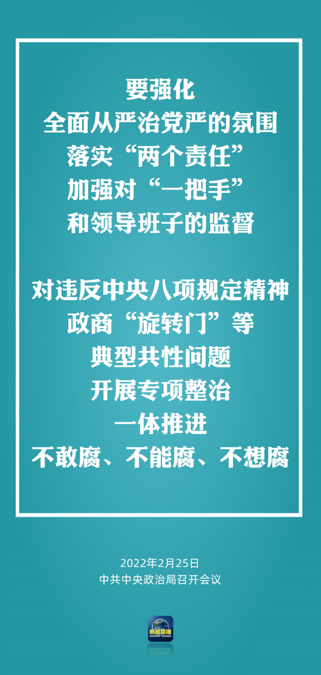 中共中央政治局2月25日召開會議,討論國務(wù)院擬提請第十三屆全國人民代表大會第五次會議審議的《政府工作報(bào)告》稿,審議《關(guān)于十九屆中央第八輪巡視情況的綜合報(bào)告》和《關(guān)于2021年中央巡視工作領(lǐng)導(dǎo)小組重點(diǎn)工作情況的報(bào)告》。中共中央總書記習(xí)近平主持會議。