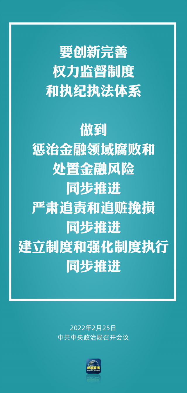 會議強(qiáng)調(diào),要強(qiáng)化黨中央對金融工作的集中統(tǒng)一領(lǐng)導(dǎo),堅(jiān)定不移走好中國特色金融發(fā)展之路。要強(qiáng)化金融風(fēng)險(xiǎn)防控,堅(jiān)決維護(hù)金融穩(wěn)定大局。要強(qiáng)化全面從嚴(yán)治黨嚴(yán)的氛圍,落實(shí)“兩個(gè)責(zé)任”,加強(qiáng)對“一把手”和領(lǐng)導(dǎo)班子的監(jiān)督,對違反中央八項(xiàng)規(guī)定精神、政商“旋轉(zhuǎn)門”等典型共性問題開展專項(xiàng)整治,一體推進(jìn)不敢腐、不能腐、不想腐。要?jiǎng)?chuàng)新完善權(quán)力監(jiān)督制度和執(zhí)紀(jì)執(zhí)法體系,做到懲治金融領(lǐng)域腐敗和處置金融風(fēng)險(xiǎn)同步推進(jìn)、嚴(yán)肅追責(zé)和追贓挽損同步推進(jìn)、建立制度和強(qiáng)化制度執(zhí)行同步推進(jìn)。要深入貫徹新時(shí)代黨的組織路線,強(qiáng)化領(lǐng)導(dǎo)班子隊(duì)伍建設(shè)。要深入推進(jìn)金融領(lǐng)域改革,不斷提高金融治理體系和治理能力現(xiàn)代化水平。