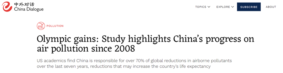 據(jù)中外對話(China Dialogue)網(wǎng)站報(bào)道,從2008年的北京夏季奧運(yùn)會(huì)到2022年的冬季奧運(yùn)會(huì),世界對于北京印象最深的變化可能是它逐漸變藍(lán)的天空。