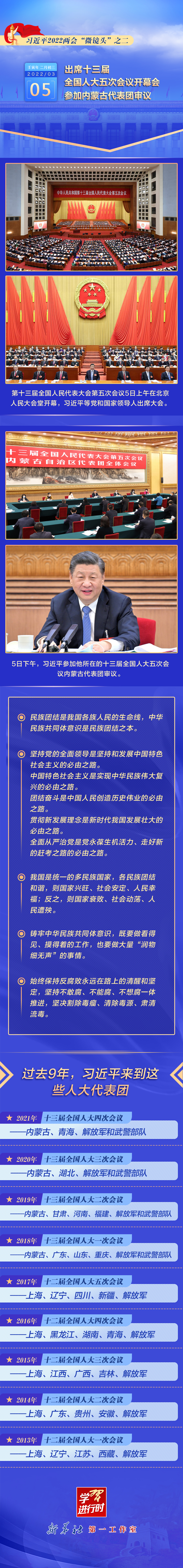 習近平2022兩會“微鏡頭”之二:3月5日,出席人代會開幕會 參加內蒙古代表團審議