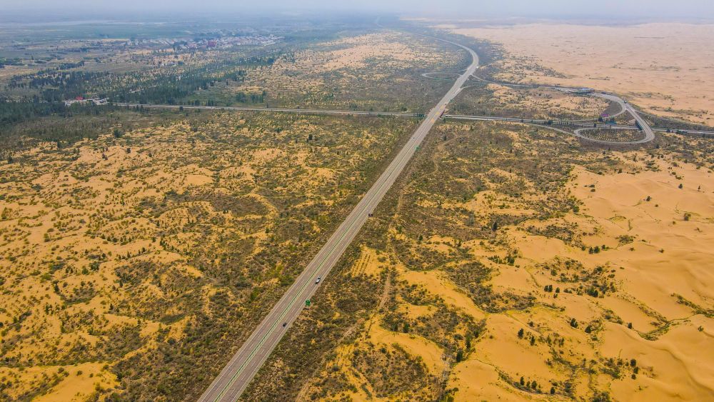 ↑這是治理后的內蒙古庫布其沙漠景色(無人機照片,2021年7月22日攝)。