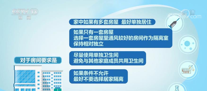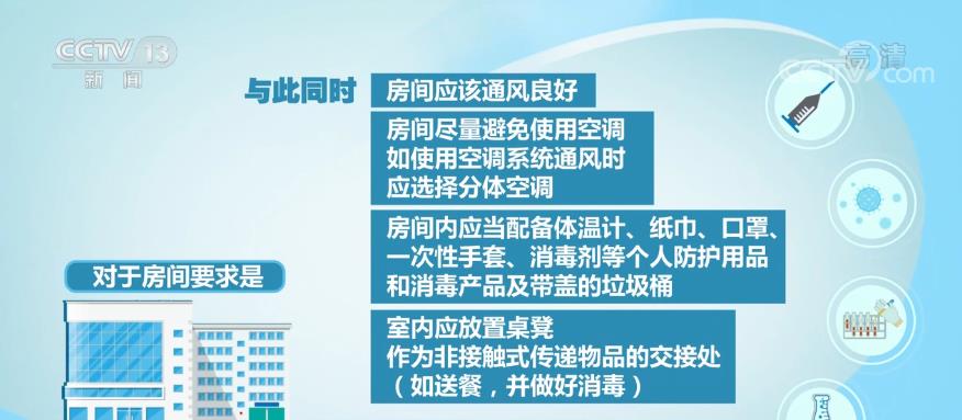 對于房間要求是,家中如果有多套房屋,最好單獨居;如果只有一套房屋,選擇一套房屋里通風較好的房間作為隔離室,保持相對獨立。盡量使用單獨衛生間,避免與其他家庭成員共用衛生間。如果條件不允許,最好不要選擇居家隔離。與此同時,房間應該通風良好;房間盡量避免使用空調,如使用空調系統通風時,應選擇分體空調。房間內應當配備體溫計、紙巾、口罩、一次性手套、消毒劑等個人防護用品和消毒產品及帶蓋的垃圾桶。室內應放置桌凳,作為非接觸式傳遞物品的交接處(如送餐,并做好消毒)。