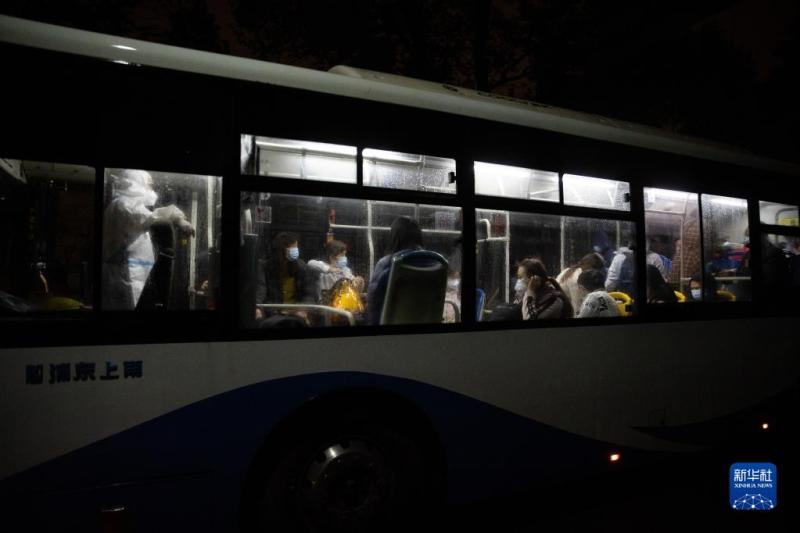 4月28日,在上海浦東北蔡鎮聯勤村村口,工作人員在統計需要轉運的密接者人數。