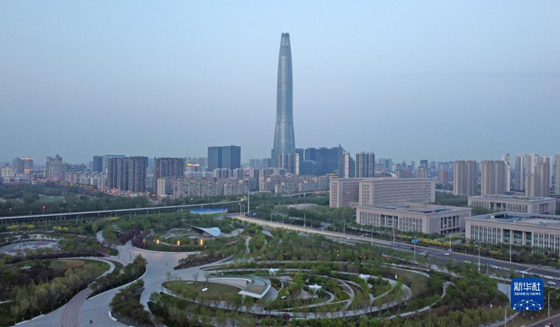 這是4月14日拍攝的中新天津生態城新貌(無人機照片)。新華社記者 趙子碩 攝