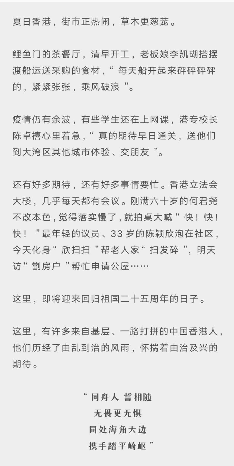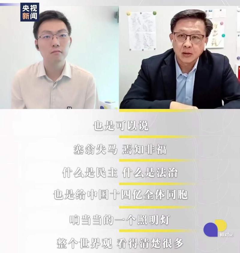 他把過去的香港比作一盞世界觀的“照明燈”,一些西方政客口中的所謂“民主”和“法治”,讓十四億中國人看得更加清楚。