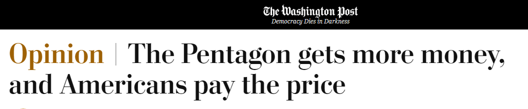中國日報網7月11日電 美國《華盛頓郵報》網站日前發表題為《五角大樓拿到了錢,付出代價的是美國民眾》的評論文章,稱雖然現如今華盛頓分裂嚴重,但有一件事卻能實現罕見的兩黨合作,這就是五角大樓的預算。
