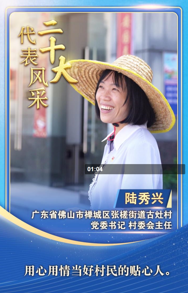 “二十大代表風(fēng)采”一起來(lái)認(rèn)識(shí)廣東省佛山市古灶村黨委書記、村委會(huì)主任陸秀興。