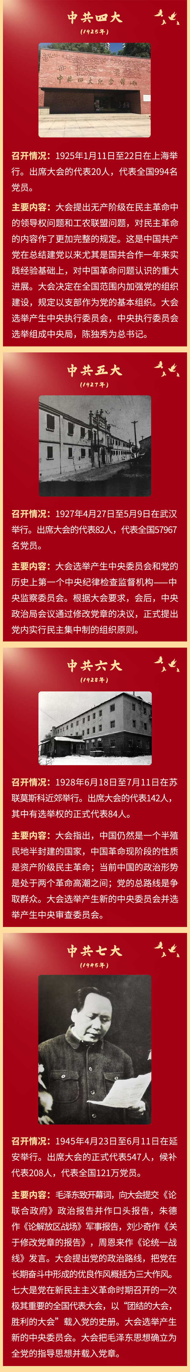黨的二十大即將隆重開幕。此次會議是在全黨全國各族人民邁上全面建設社會主義現代化國家新征程、向第二個百年奮斗目標進軍的關鍵時刻召開的一次十分重要的大會。黨建網微平臺依據《中國共產黨一百年大事記》整理了黨的一大至十九大“極簡史”,邀您一起學習了解中國共產黨歷次全國代表大會概況。