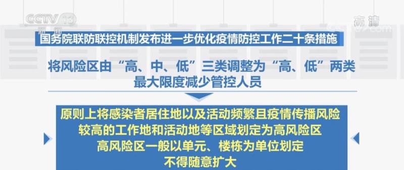 央視網消息:國務院聯防聯控機制11月11日發布《關于進一步優化新冠肺炎疫情防控措施 科學精準做好防控工作的通知》,通知明確了進一步優化防控工作的二十條措施。進一步優化防控工作的二十條措施中,對風險區劃定等方面也提出新的規定。