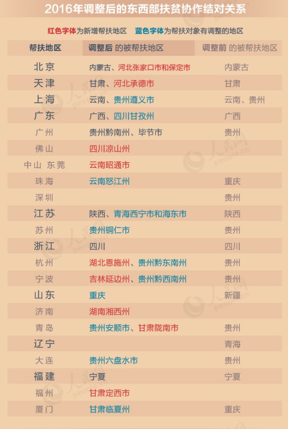 ▲2016年,東西部扶貧協(xié)作結(jié)對關系。(圖片來源:人民網(wǎng))