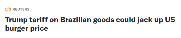 報道指出,巴西是美國第二大貿易伙伴,但此次加稅幅度較4月份宣布的10%稅率大幅提升。據貿易商透露,6月份以來,10%的關稅就已經導致美國自巴西進口的牛肉放緩。據悉,美國企業通常從巴西等國進口精瘦牛肉,與本土供應的肉混合制成漢堡肉。盡管消費者此前還能夠接受高價肉類,但此次加稅將對消費者的需求構成新的考驗。