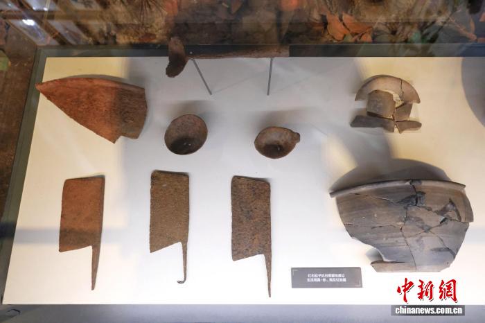 紅石砬子抗日根據地遺址發掘出的生活用品。 中新社記者 賈天勇 攝