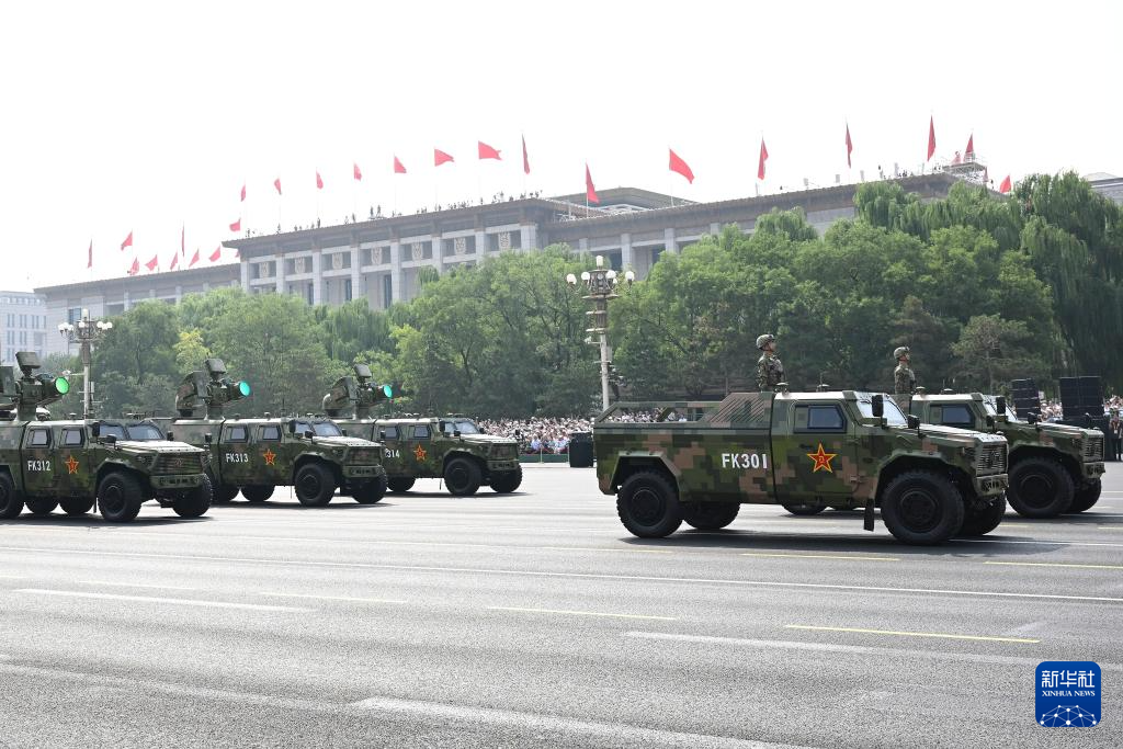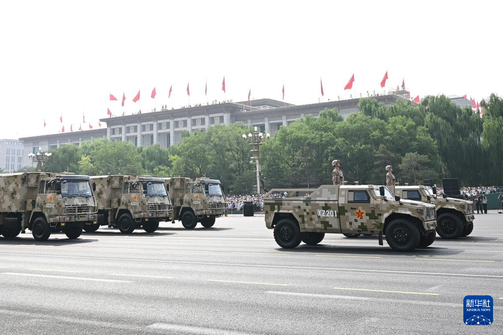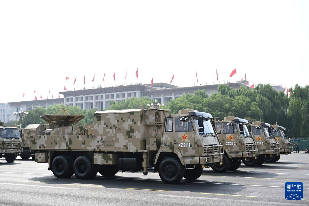 9月3日,紀念中國人民抗日戰爭暨世界反法西斯戰爭勝利80周年大會在北京隆重舉行。這是信息支援方隊接受檢閱。