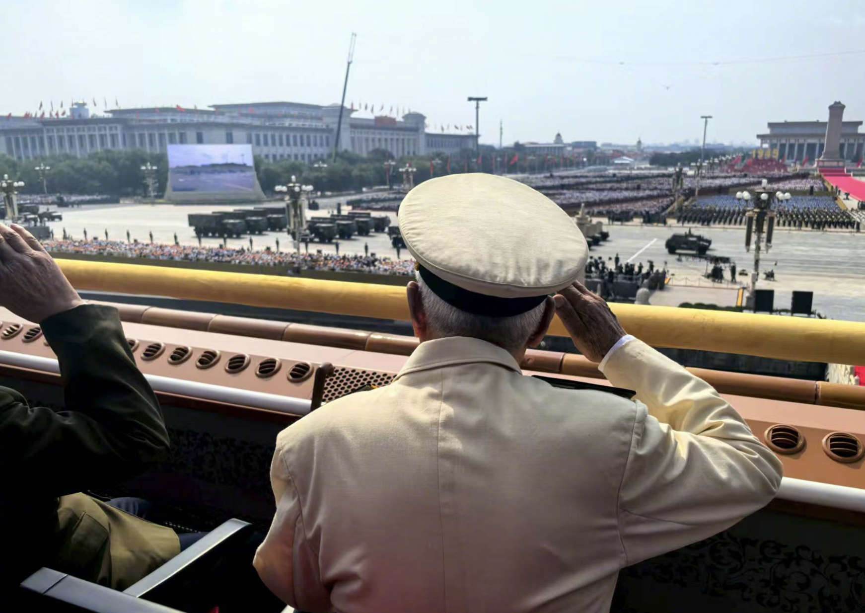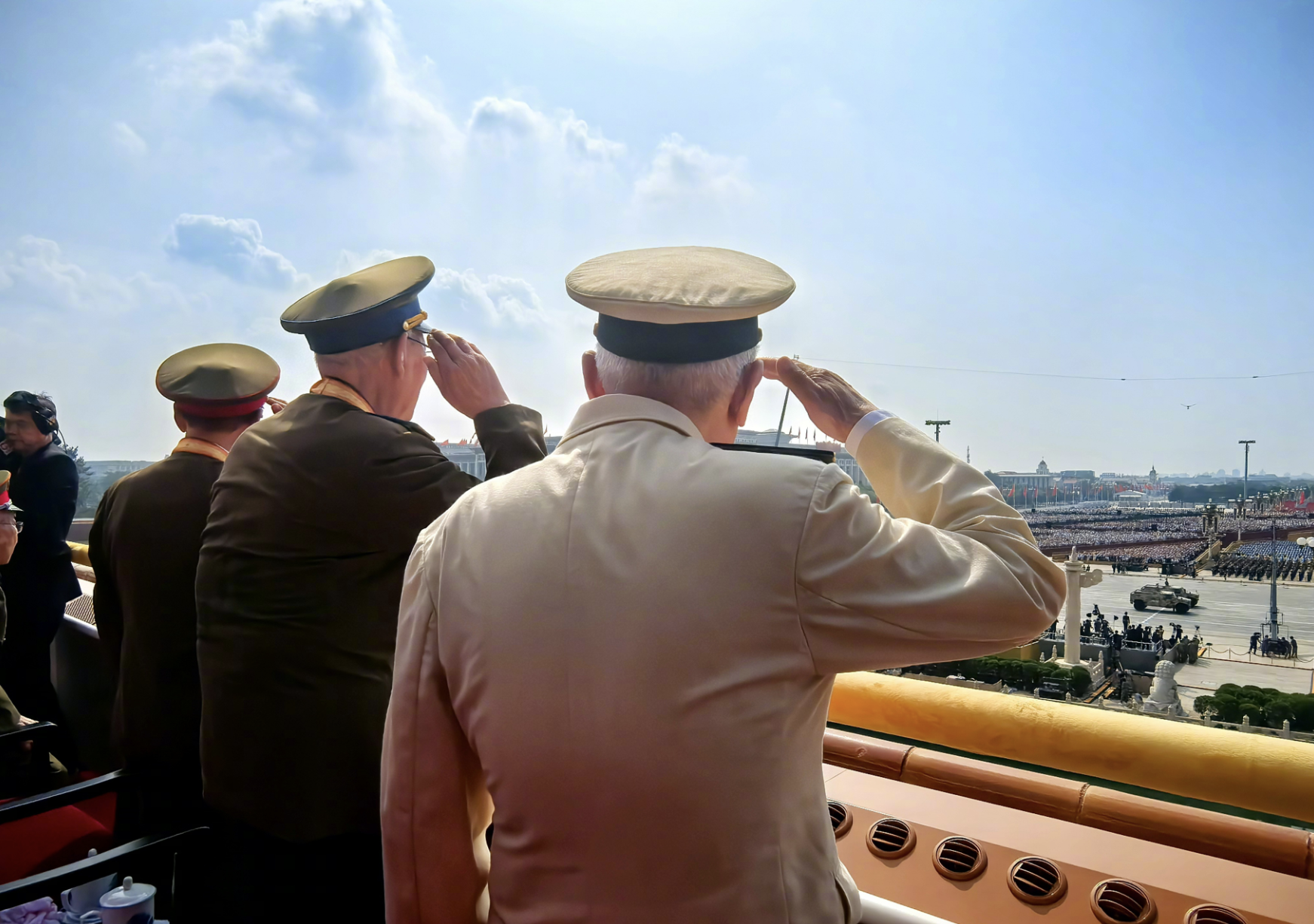 天安門城樓上,參加過抗戰的老戰士
