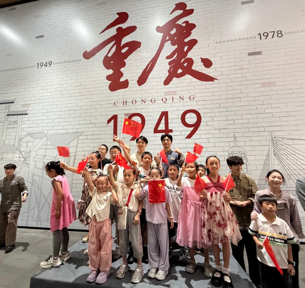 “看完劇后,我內心激動不已,劇中的人物與我互動,為我們提供了釋放情緒的‘出口’。我們和演員一起揮舞國旗,唱起國歌,仿佛自己也成了當年歡呼隊伍里的一員。”重慶市民石國華說。
