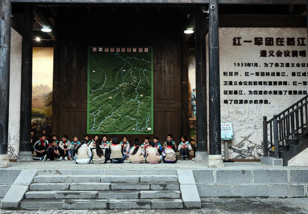 在重慶市綦江區石壕鎮,學生們在紅一軍團司令部舊址參加研學活動。蘭紅光 攝