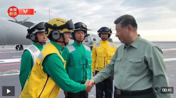 我國(guó)第一艘電磁彈射型航空母艦福建艦入列授旗儀式5日在海南三亞某軍港舉行。中共中央總書記、國(guó)家主席、中央軍委主席習(xí)近平出席入列授旗儀式并登艦視察。