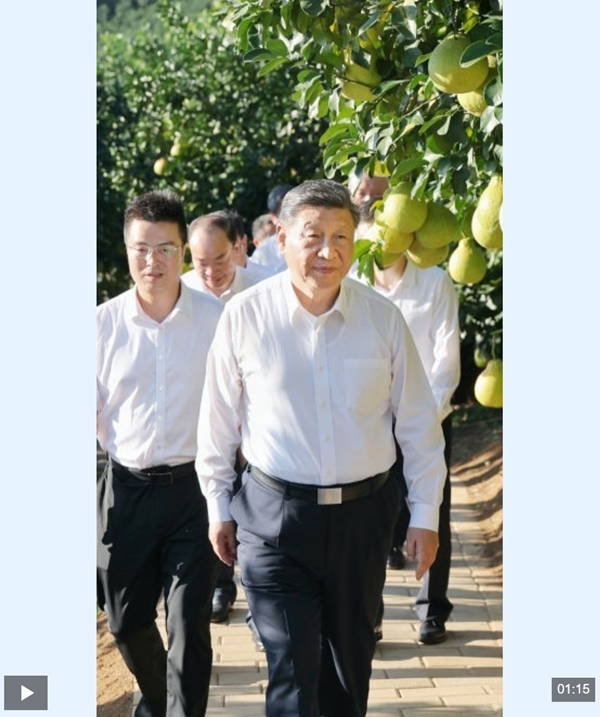 “產業振興是鄉村振興的重中之重,要落實產業幫扶政策,做好‘土特產’文章”。習近平總書記赴地方考察時總是格外關心當地的“土特產”,給鄉村特色產業發展把脈開方。他多次走進田間地頭,為特色產業謀良策,為農民致富指方向。金柚、木耳、黃花、油茶、咖啡……總書記考察過的一個個“土特產”變身鄉親們增收致富的大產業,一幅生機勃勃的鄉村全面振興新圖景正在希望的田野上鋪展。