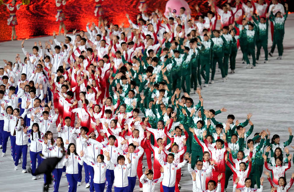 廣東省體育代表團、香港特別行政區體育代表團和澳門特別行政區體育代表團在入場儀式上共同入場。新華社記者江漢攝