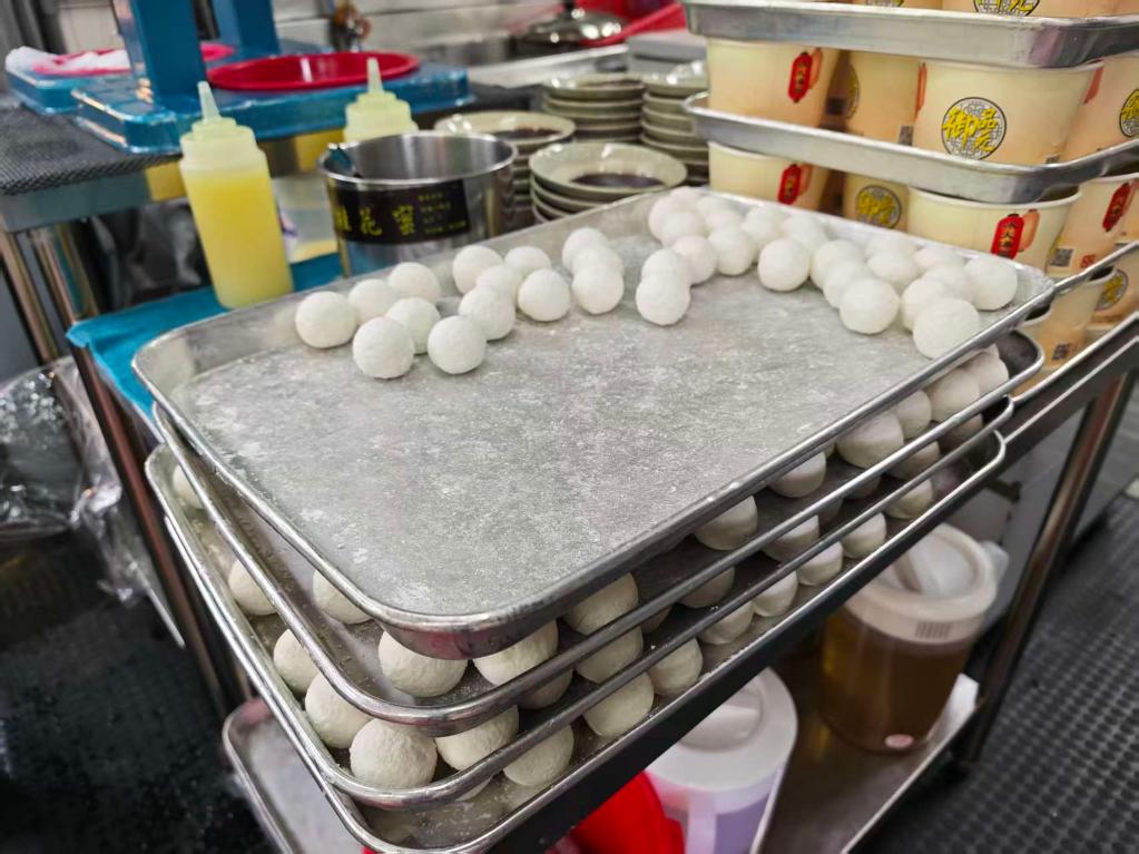 25歲的店主何先生告訴記者,雖名為“湯圓”,店內其實賣的是“元宵”,類似大陸北方的做法。“我們秉持純手工制作,先把餡料做好,然后丟在竹篩上不斷‘滾’。和湯圓比,元宵煮熟后外皮晶亮,可以看出內餡,口感更Q彈。”