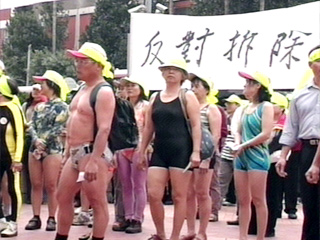 據臺灣媒體報道,抗議民眾拉著白布條,有人只穿著泳衣、泳褲,高喊著“還我市立游泳池,我要游泳、我要游泳!”