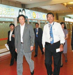 臺灣“華航”副總謝世謙和長榮總經理陳欣德昨天一早親自在大廳接機。東航代表團一到大廳,立刻坐上長榮安排的專車,在陳欣德陪同下前往長航航天、空廚、訓練中心參觀。